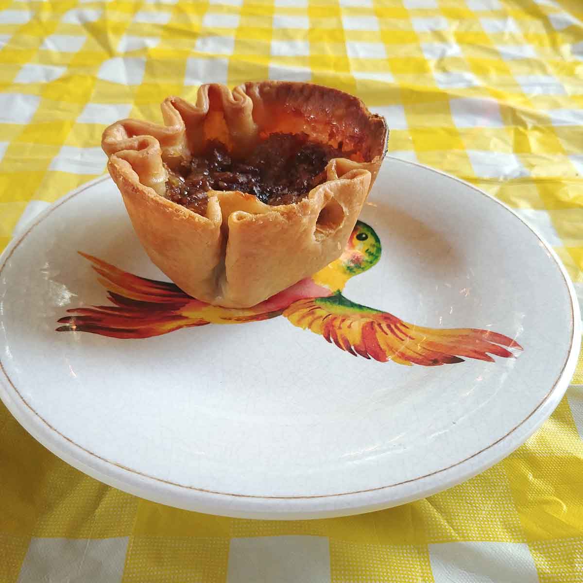 The butter tarts at Madelyn’s diner have a very rustic, hand-made appearance with a cute floret-style crust. It is definitely a house-made butter tart, and while each tart looks similar to the others, there are variations which show they are hand-made with care.
