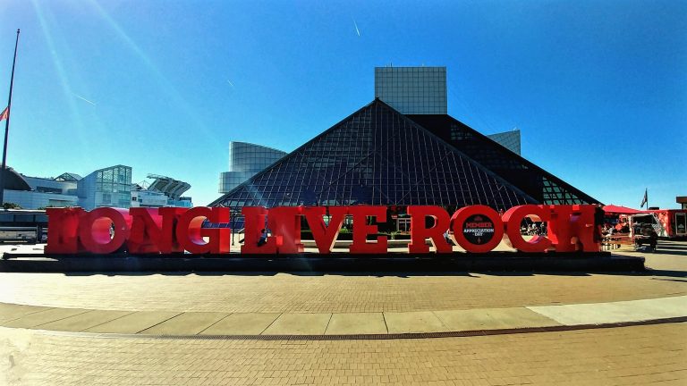 The giant glass pyramid structure almost reminds me of the Louvre in Paris, where all the greatest works of art are kept. This is no different; some of music’s most significant moments and memorabilia are held here. The Rock Hall is one of the great museums in America. As you walk up to the museum, there is no doubt what is in store for you as the giant red letters out front say “LONG LIVE ROCK.”